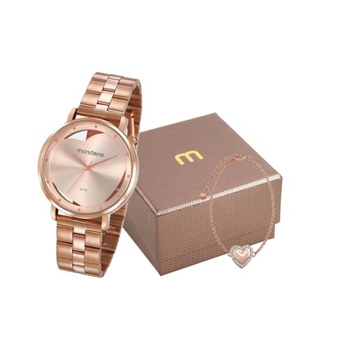 Kit Relógio Feminino Coração com Pulseira Rosé