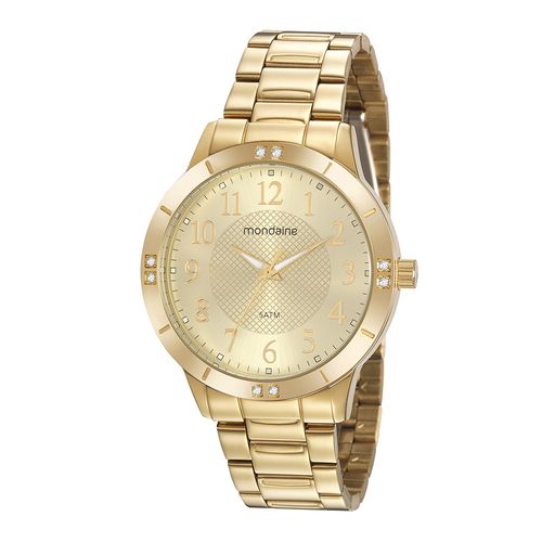 Relógio Feminino Catraca Serrilhada Cristais Dourado