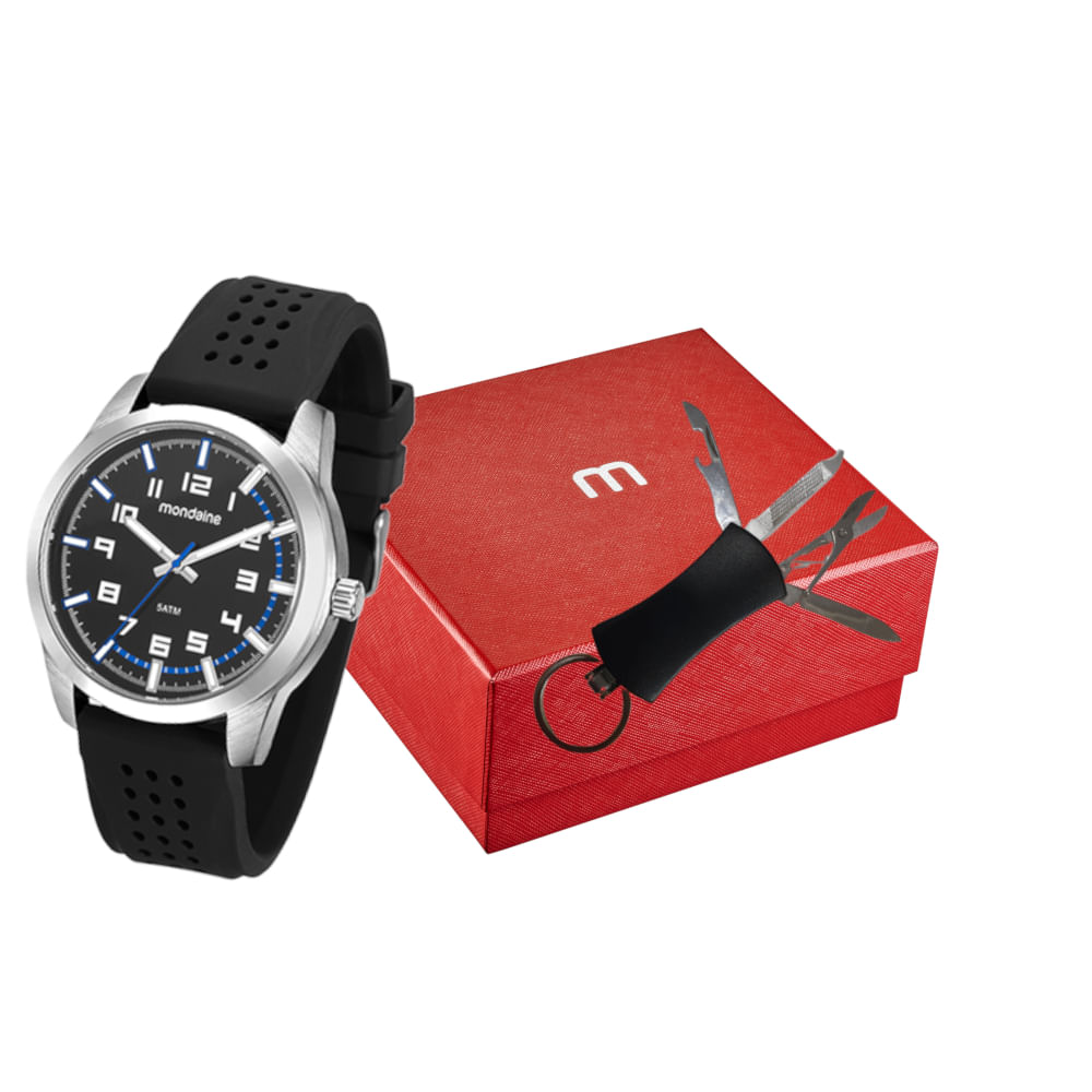 Descubra o sofisticado kit composto por um relógio com caixa em metal de 4,8 cm de diâmetro, ideal para se ajustar perfeitamente a todos os tamanhos de pulso. Este relógio apresenta marcadores numéricos e uma pulseira em silicone, oferecendo conforto e estilo. Além disso, o kit inclui um chaveiro multifunções equipado com tesourinha, lâmina, lixa e abridor de garrafa, proporcionando praticidade e versatilidade em um único conjunto.