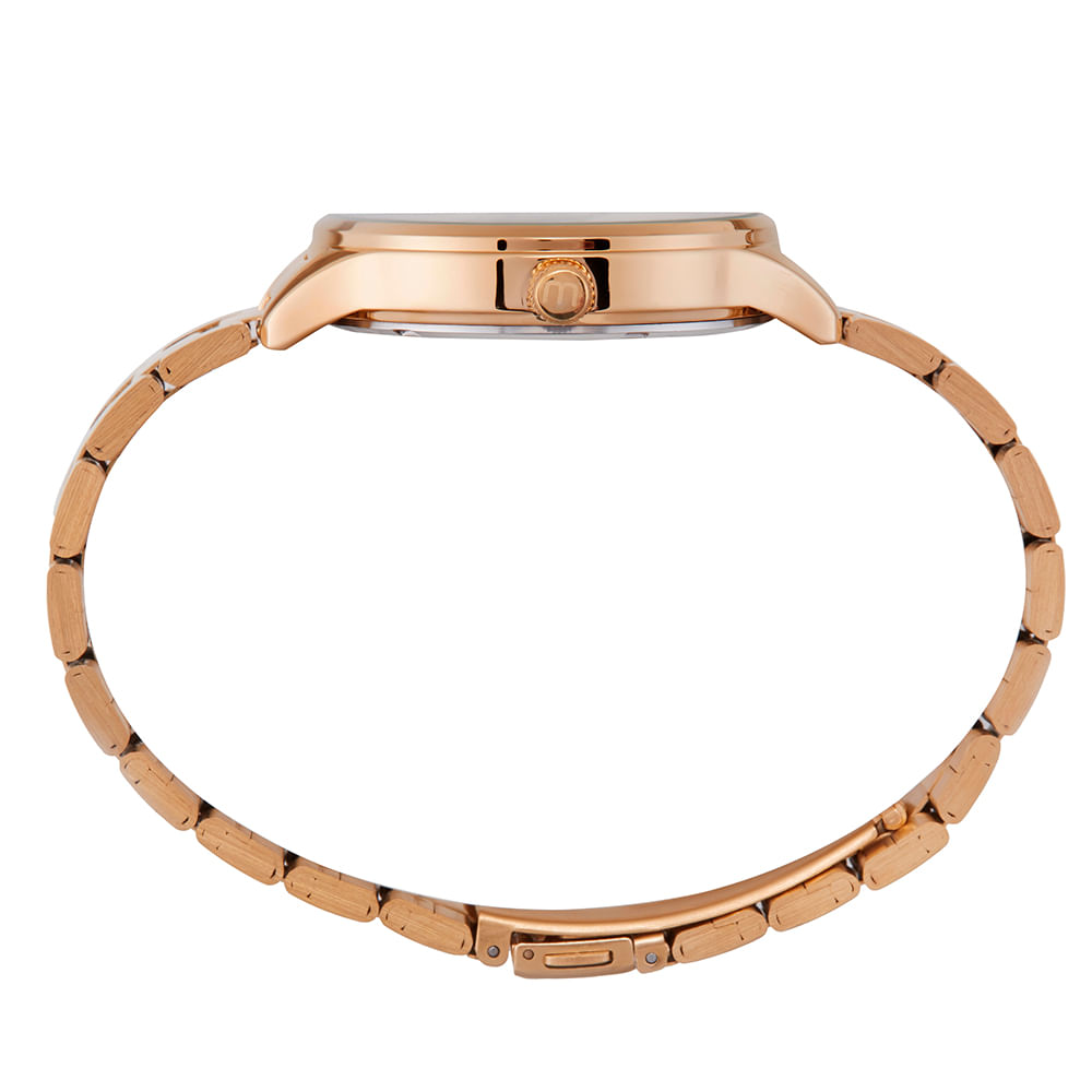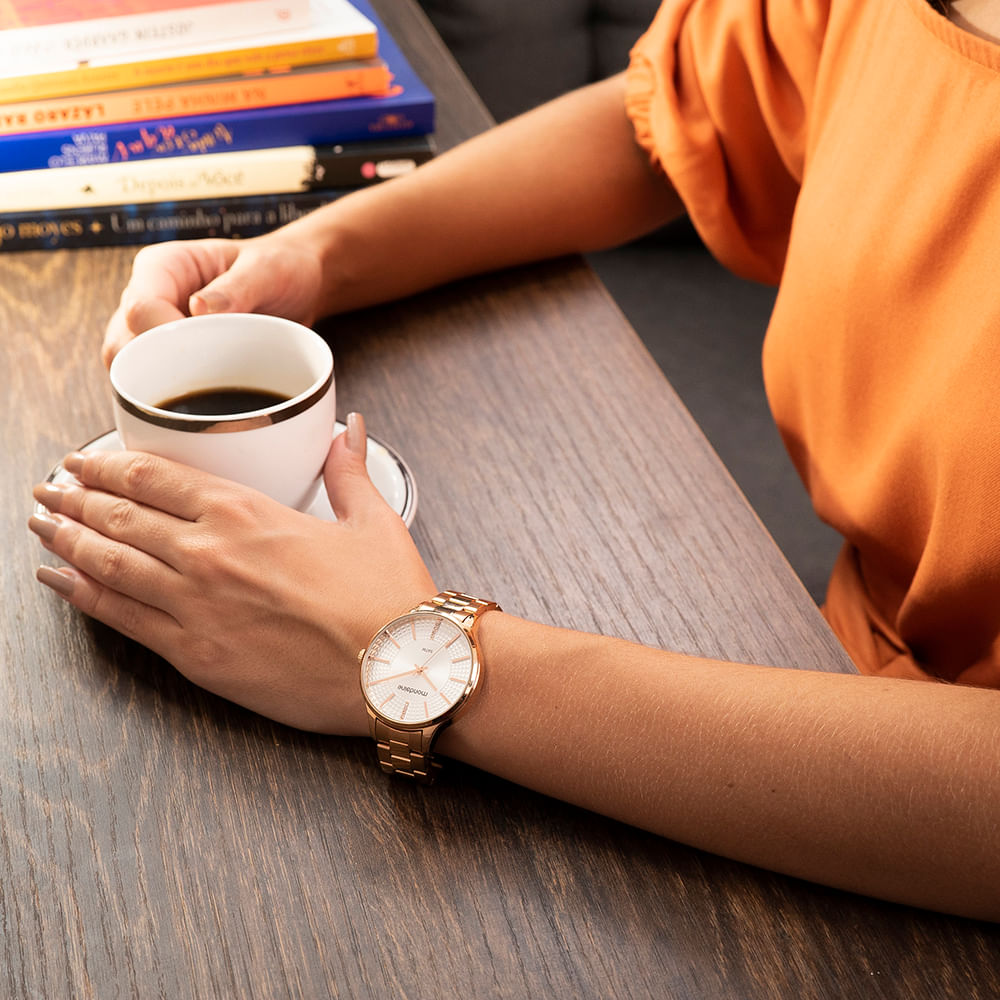 Com muito romantismo, este kit vem com um relógio analógico rose gold com mostrador texturizado e cristais nas posições 12 e 6 horas.. O relógio tem pulseira trabalhada em aço com fecho de acionamento latreral, ideal para pulsos maiores e médios. Ainda acompanha um colar com coração cravejado com cristais. Uma peça extremamente delicada que compõe qualquer look. Esse relógio possui a caixa em 4 cm de tamanho.