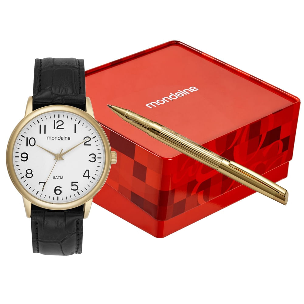 Este Kit Masculino tem como peça principal um relógio com design robusto e marcante, ideal para quem busca presença no pulso. A caixa redonda é construída em Aço, garantindo durabilidade e qualidade. O mostrador Preto é versátil e conta com a função analógica e um prático calendário.