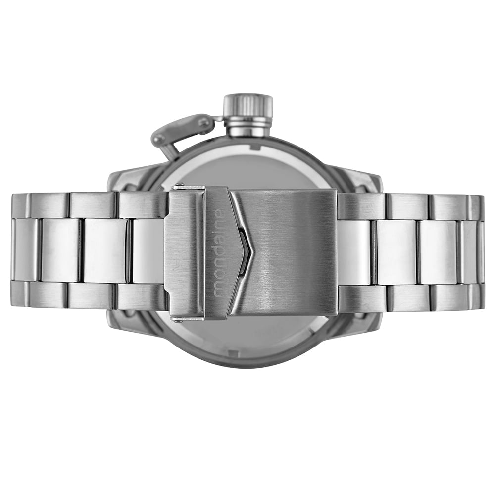 Este relógio analógico com calendário é um modelo atemporal e versátil. Possui caixa robusta e protetor de coroa rosqueável, sua pulseira em aço possui fecho por trava de segurança conferindo resistência ao acessório. Cheio de personalidade, é perfeito para quem gosta de ousar no look. Esse relógio possui a caixa em 4,8 cm de tamanho.