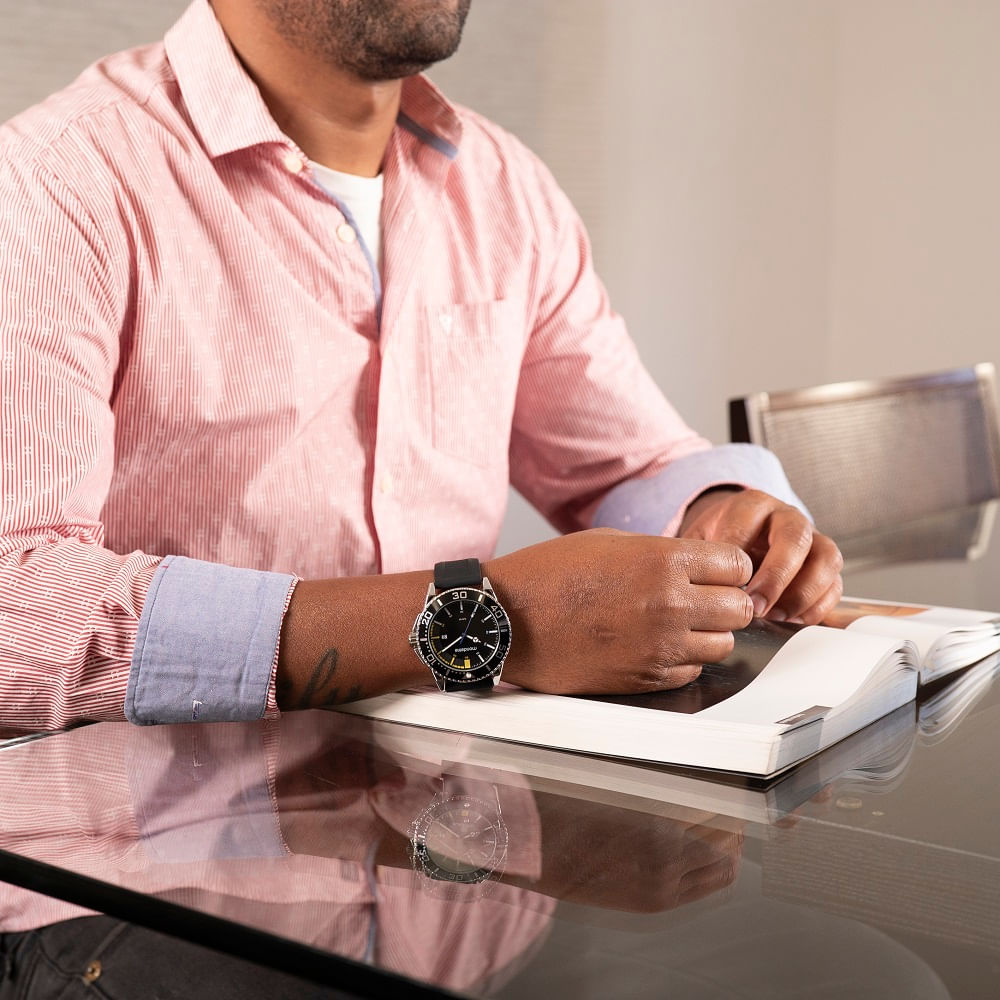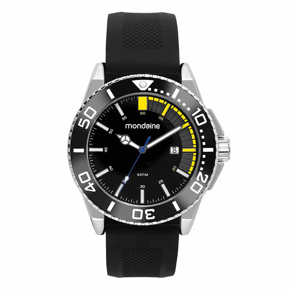 Com pulseira de silicone este relógio conta com caixa prateada em metal, mostrador texturizado com detalhes em amarelo. A pulseira incrivelmente confortável e contemporânea em silicone possui fecho fivela. Um modelo esportivo une o clássico do analógico com os recortes modernos e cores vibrantes. Esse relógio possui a caixa em 4,8 cm de tamanho.