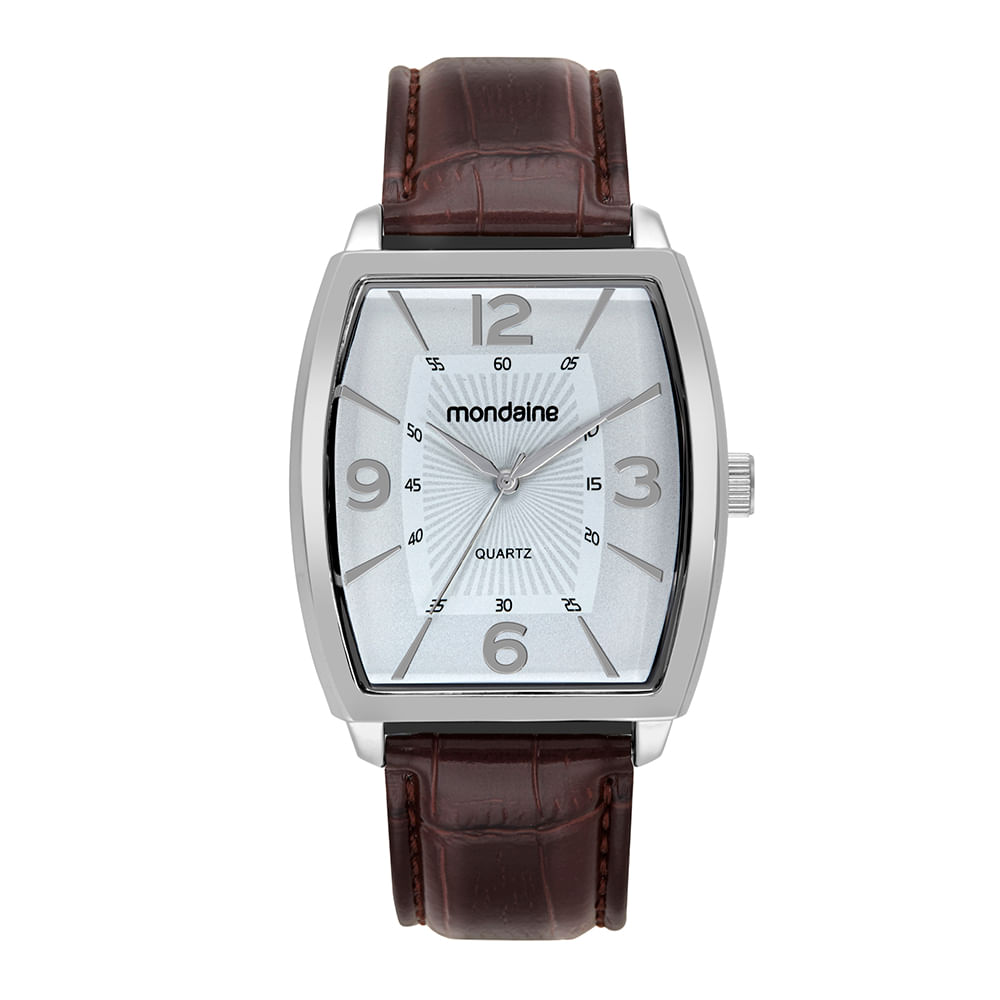 Este relógio de pulso analógico clássico apresenta uma caixa quadrada e um visor claro com textura, facilitando a leitura das horas com marcadores numéricos e geométricos. A caixa em metal complementa o design sofisticado, enquanto a pulseira marrom em material sintético com textura de crocodilo adiciona um toque de distinção. O fecho de fivela garante um ajuste fácil e seguro. Ideal para quem aprecia um estilo atemporal com detalhes refinados e praticidade.