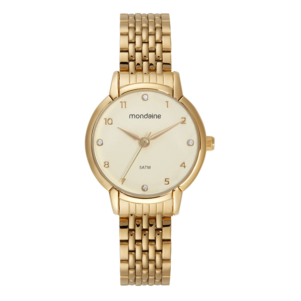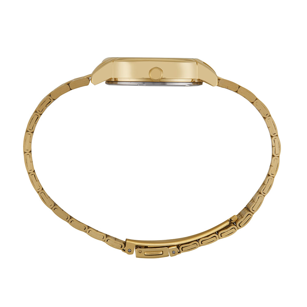 Este relógio analógico dourado é uma peça sofisticada que combina estilo e funcionalidade. Seu mostrador prata confere um visual elegante e moderno, ideal para diferentes ocasiões. Sua pulseira de aço conta com um fecho de acionamento lateral, oferece praticidade e segurança no uso. Projetado para proporcionar um ajuste confortável, tem caixa com 3,2 cm de diâmetro, adaptando-se perfeitamente a todos os tamanhos de pulso, com um ajuste ideal especialmente para pulsos medianos. Este relógio é a escolha perfeita para quem busca um acessório versátil e de bom gosto.