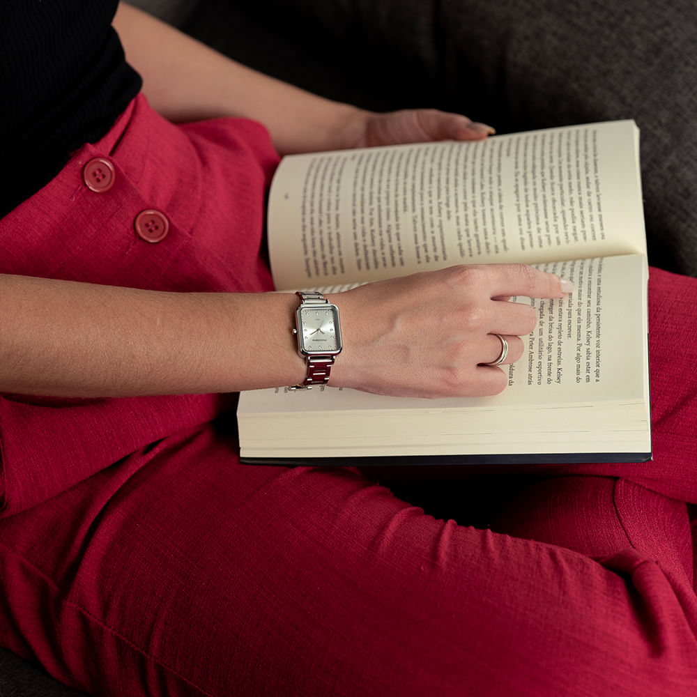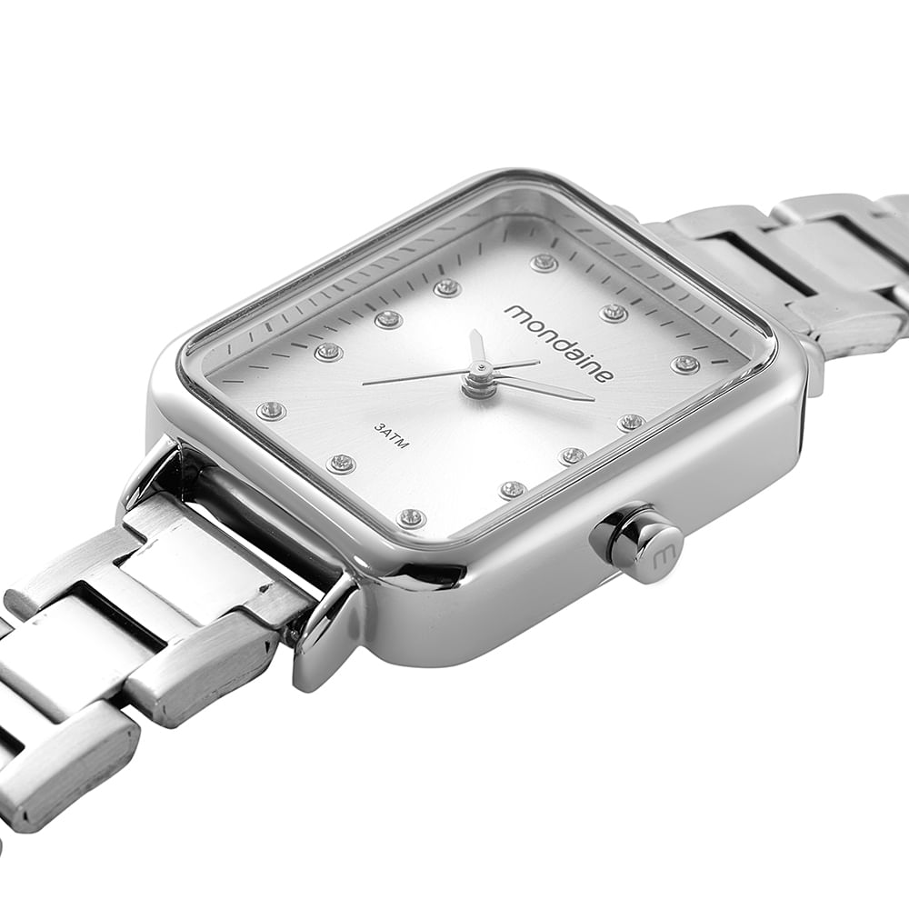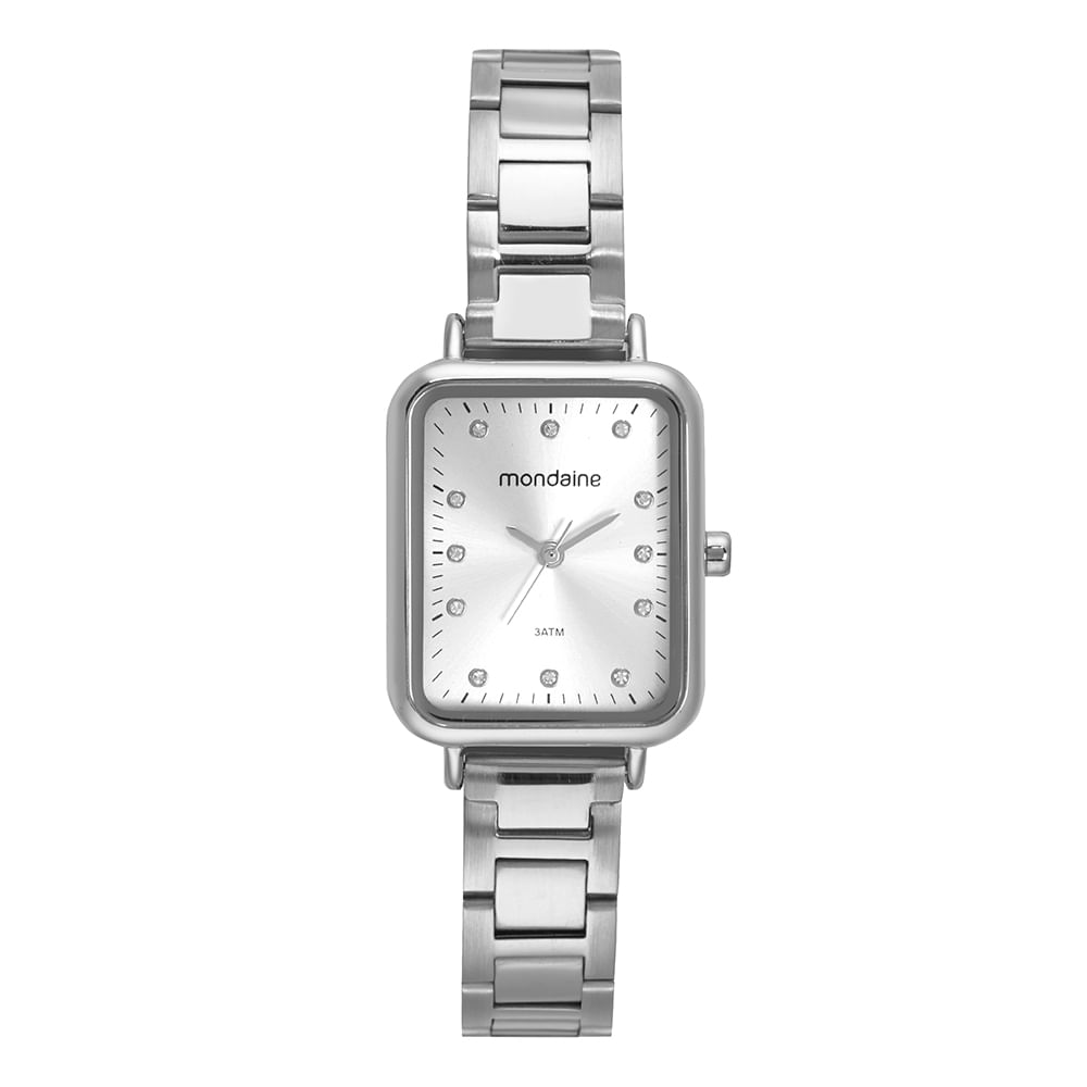 Relógio analógico de elegância atemporal, sua caixa retangular ostenta um mostrador com um efeito metálico, realçado por marcadores em cristais. Com uma folheação prateada, a caixa de metal, com 2,4x3,4 cm de diâmetro, oferece um ajuste confortável para todos os tamanhos de pulso. Este acessório é a escolha perfeita para aprimorar uma variedade de visuais com seu charme refinado.