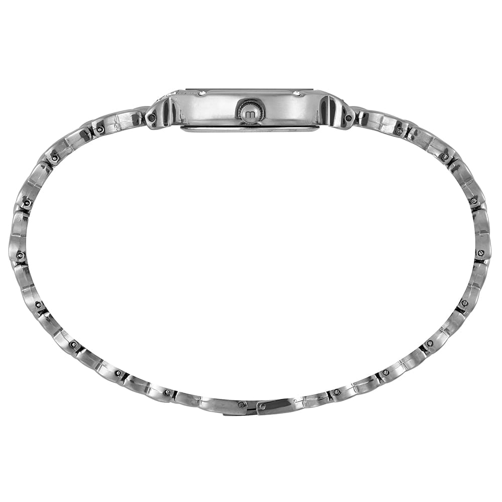 A pulseira de metal prata confere durabilidade e um visual elegante e atemporal à peça. O fecho em aço garante um ajuste seguro e prático no pulso. Com fundo de pressão e resistência de 3 ATM, este relógio é ideal para a proteção diária contra respingos.