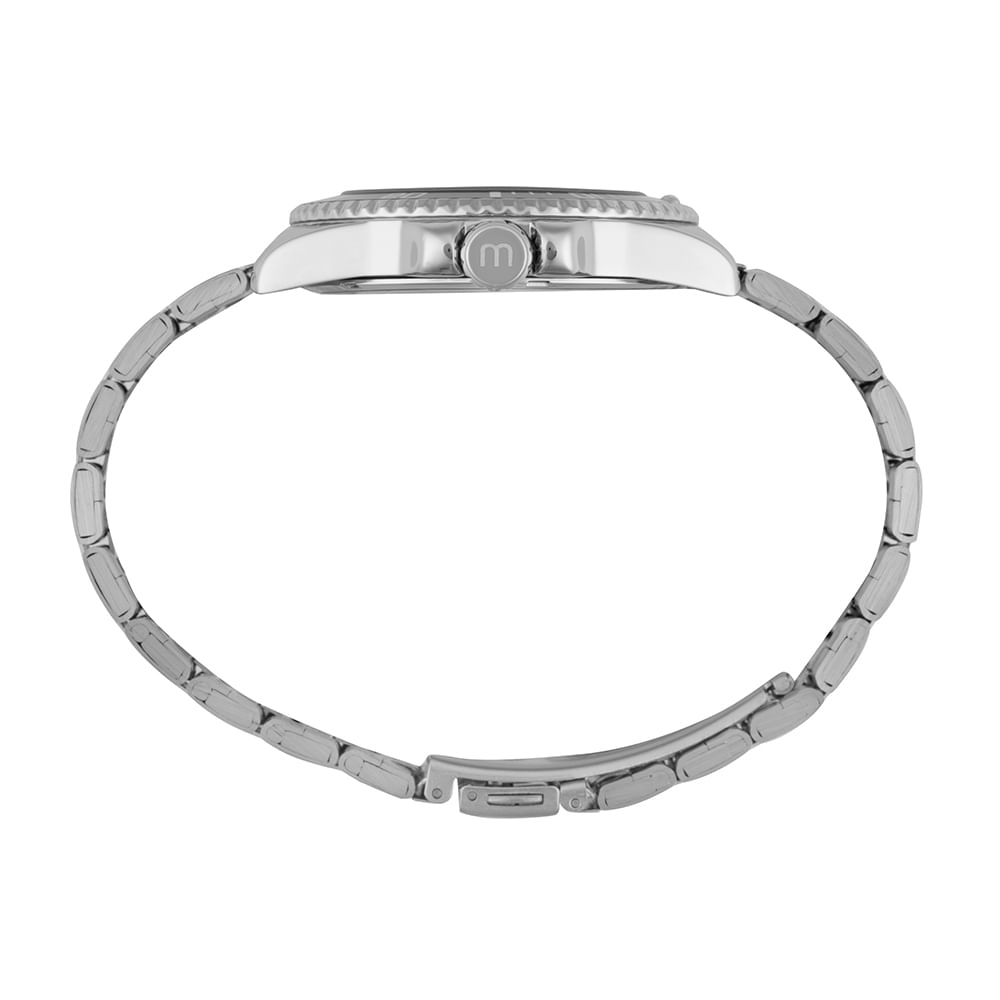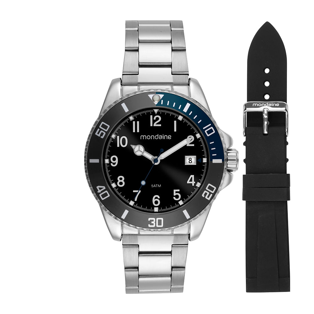 Sua pulseira em aço prata reforça a durabilidade e o estilo clássico do modelo. O acionamento lateral proporciona praticidade no ajuste das funções.